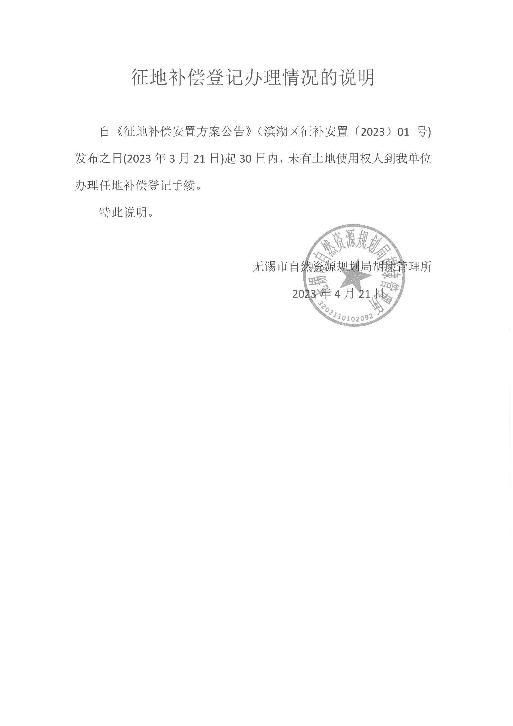 补偿登记(2023)01号