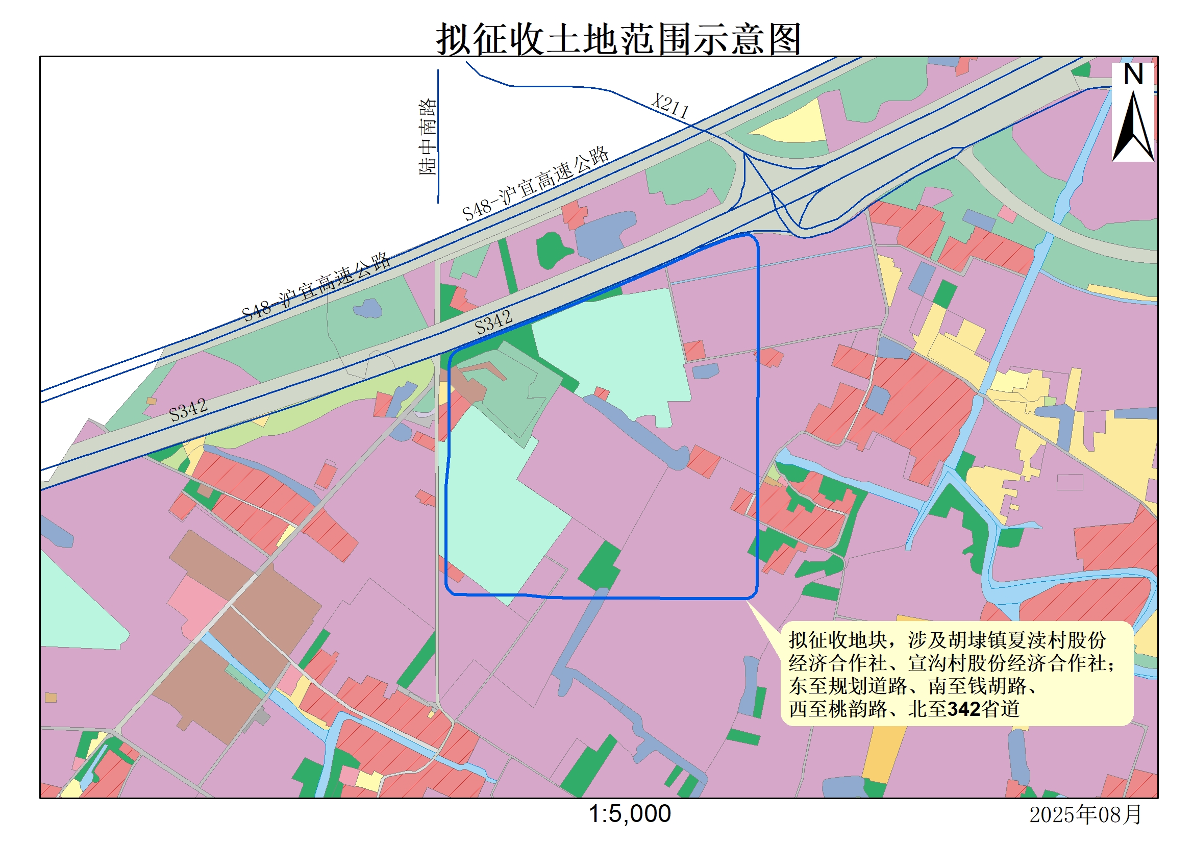 本次拟征收地块为桃韵路与钱胡路交叉口东北侧地块,位于无锡市滨湖区胡埭镇夏渎村股份经济合作社、胡埭镇宣沟村股份经济合作社范围内。拟征收土地位置详见附图。