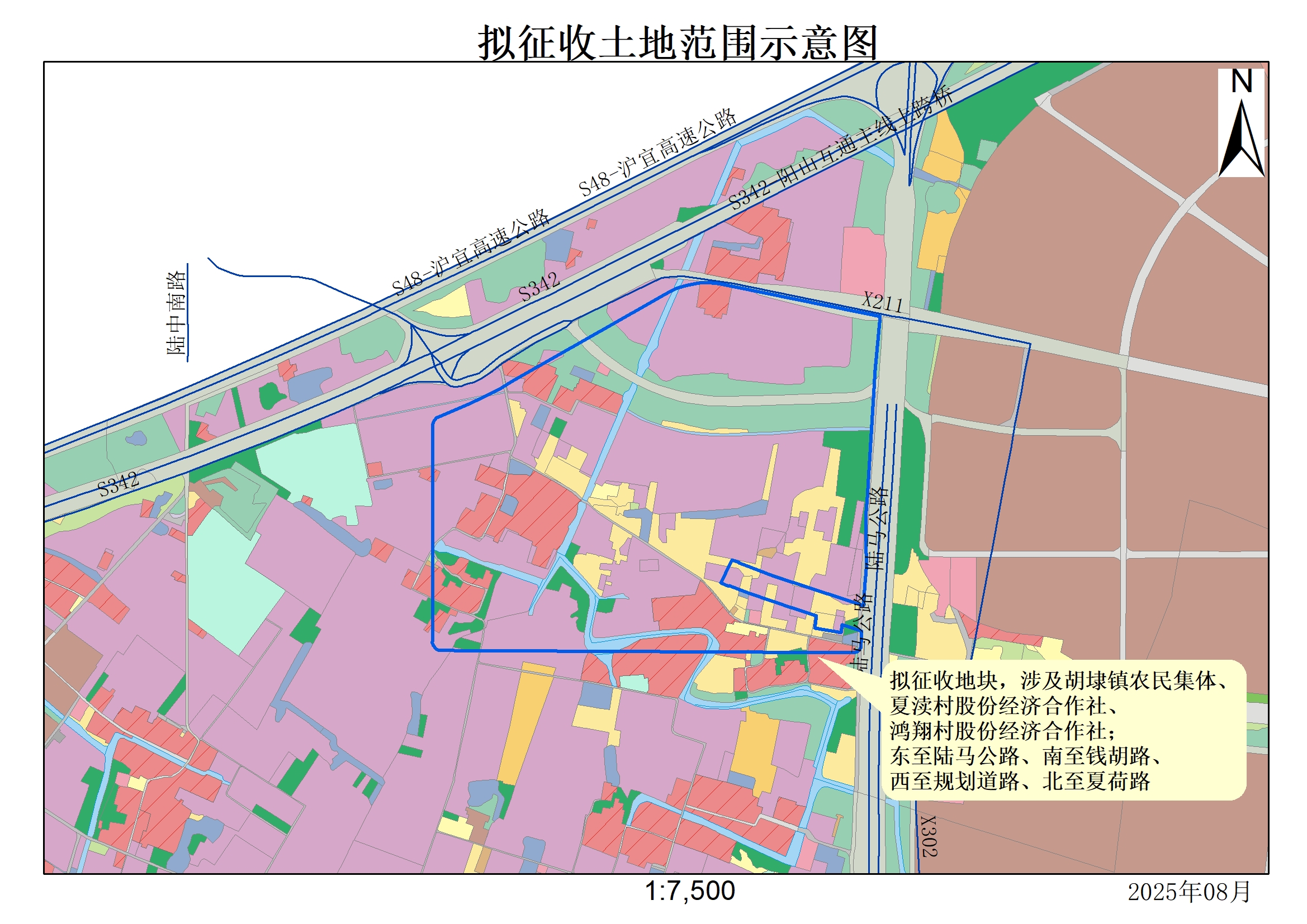 本次拟征收地块为陆马公路与钱胡路交叉口西北侧地块,位于无锡市滨湖区胡埭镇农民集体、胡埭镇夏渎村股份经济合作社、胡埭镇鸿翔村股份经济合作社范围内。拟征收土地位置详见附图。